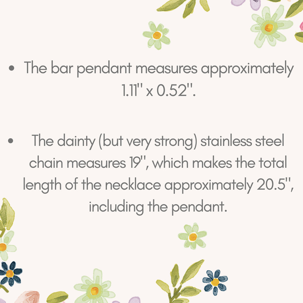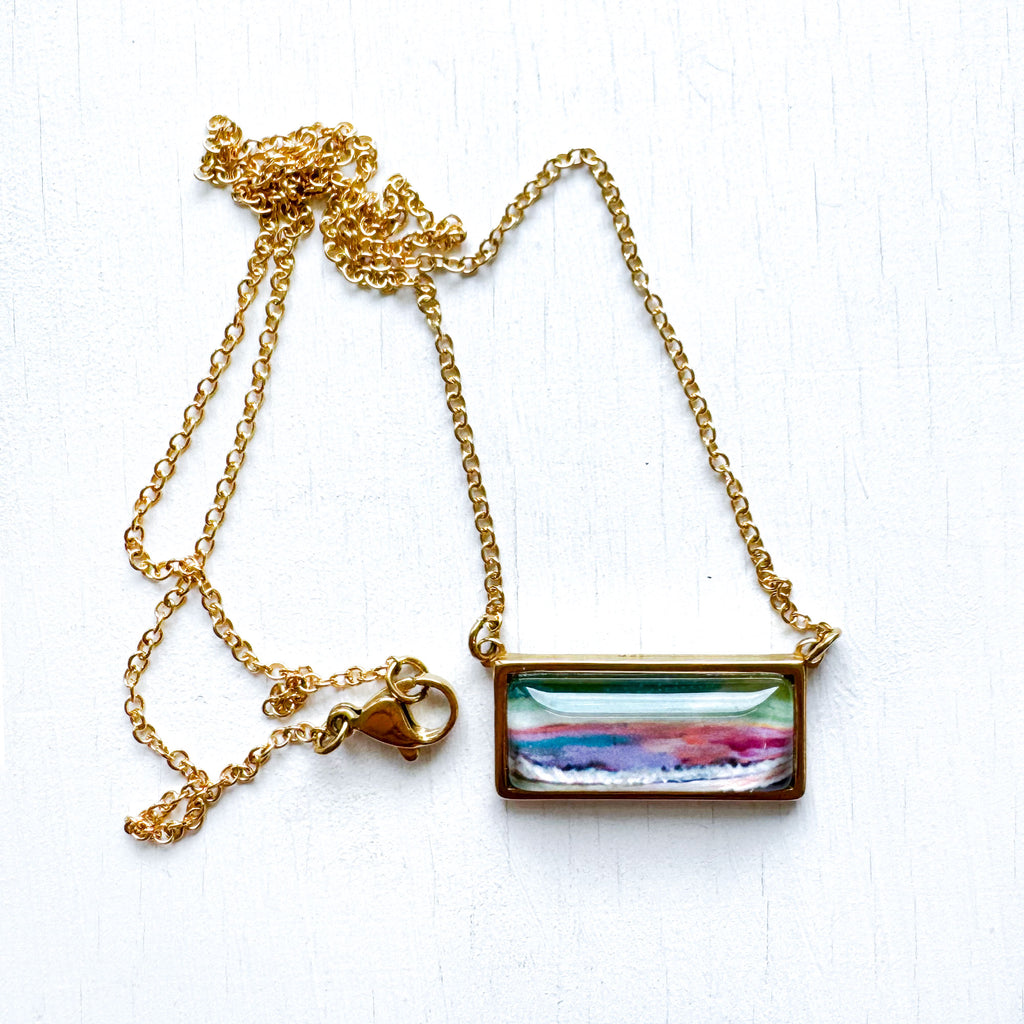 These trendy necklaces are made of stainless steel, the bar pendant measures approximately 1.11" x 0.52" and it features a tiny print of one of my originals paintings.